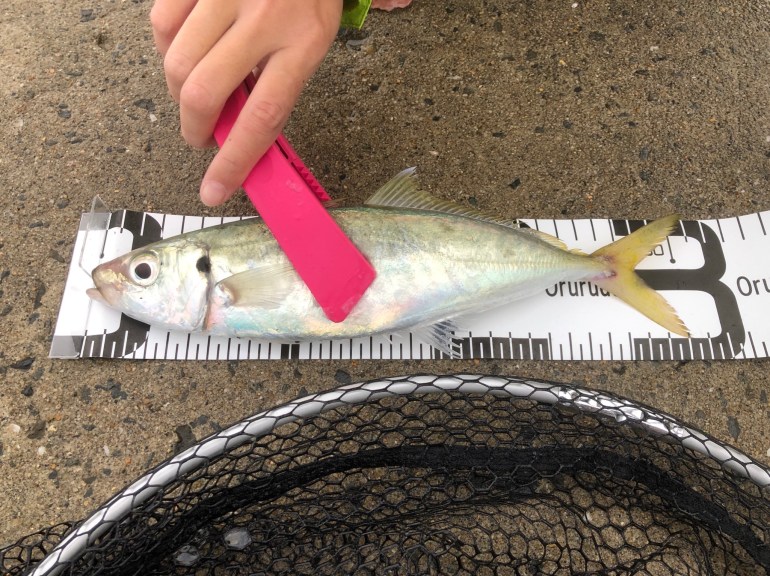 明るくなり始めて、未希が尺アジをゲット!