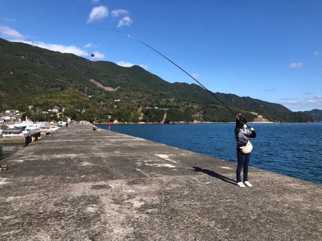 こないだ、衣奈漁港で釣りをしたときに仲良くなったお兄ちゃんが、前の週に尾鷲の堤防で55cmの真鯛を釣ったとのことで、私も尾鷲に来ています。