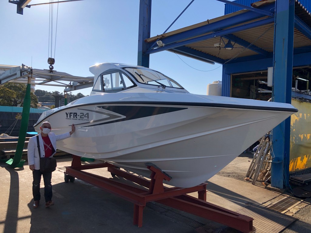 ヤマハのYFR24EXの新艇。総額1000万円くらいでしたが、100万円くらい値引きをしてもらいました。