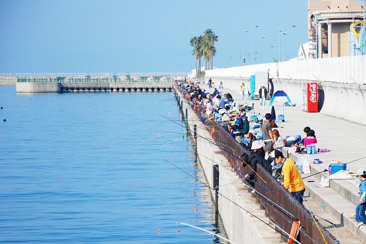 マリーナシティの堤防も好釣り場で、シーズンにはかなり混雑します。