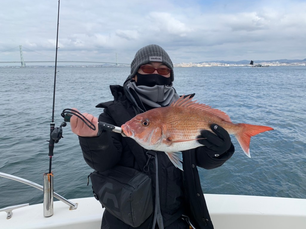さらに淡路島の翼港沖で、待望の真鯛をゲットしました!
