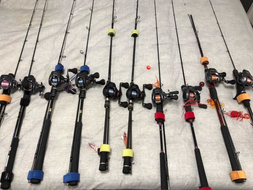 ボート釣りのタックルも、ボートに乗ったらすぐに釣りができるように準備しました。