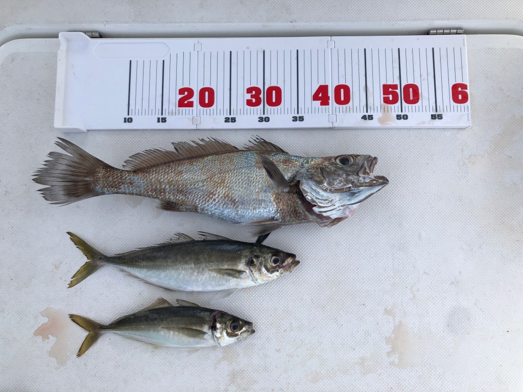 手応え的には青物かなと思いましたが、途中から手応えがなくなったので、青物ではないと気付きましたが、まさかのクログチ。友ヶ島ではクログチは大量に釣れているので珍しくありませんが、私は初だったので嬉しかったです。