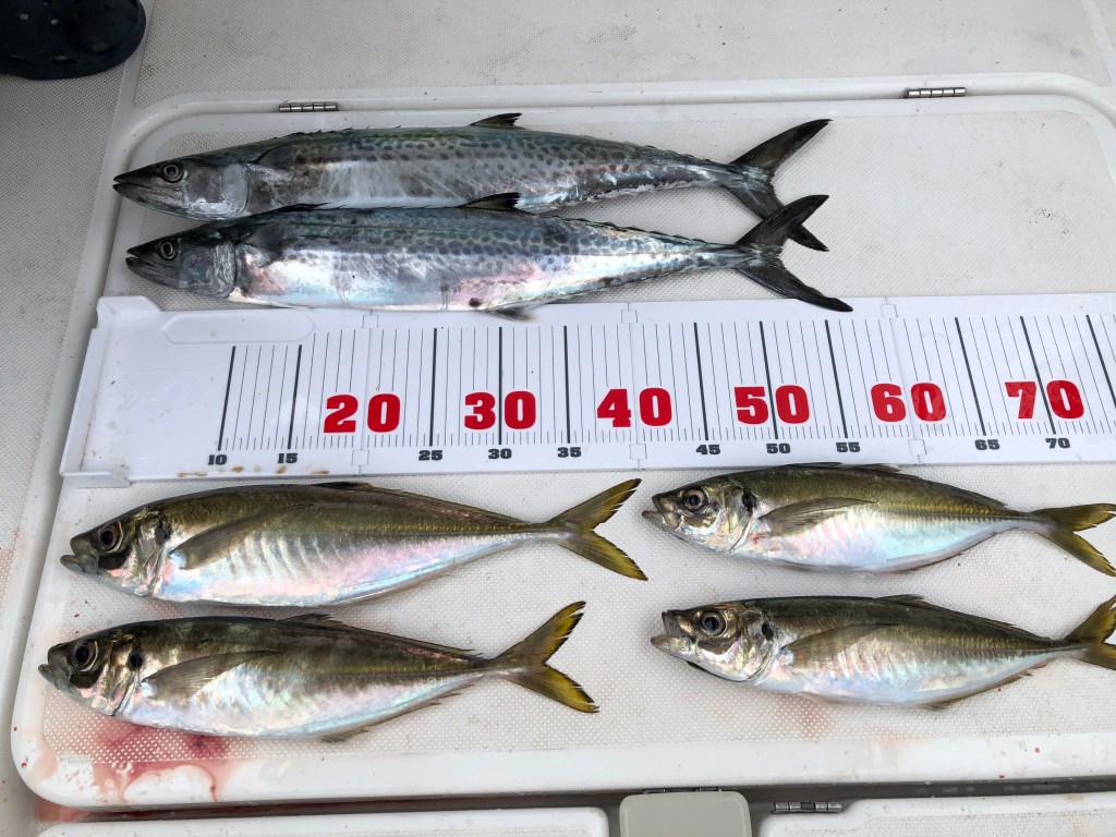 写真以外にも、25cmくらいのアジが数匹いましたが、チャリコと一緒にマリーナでリリースしました。