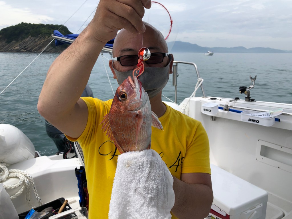 タイラバでは本命の真鯛は釣れず、キレイなチャリコのみ。