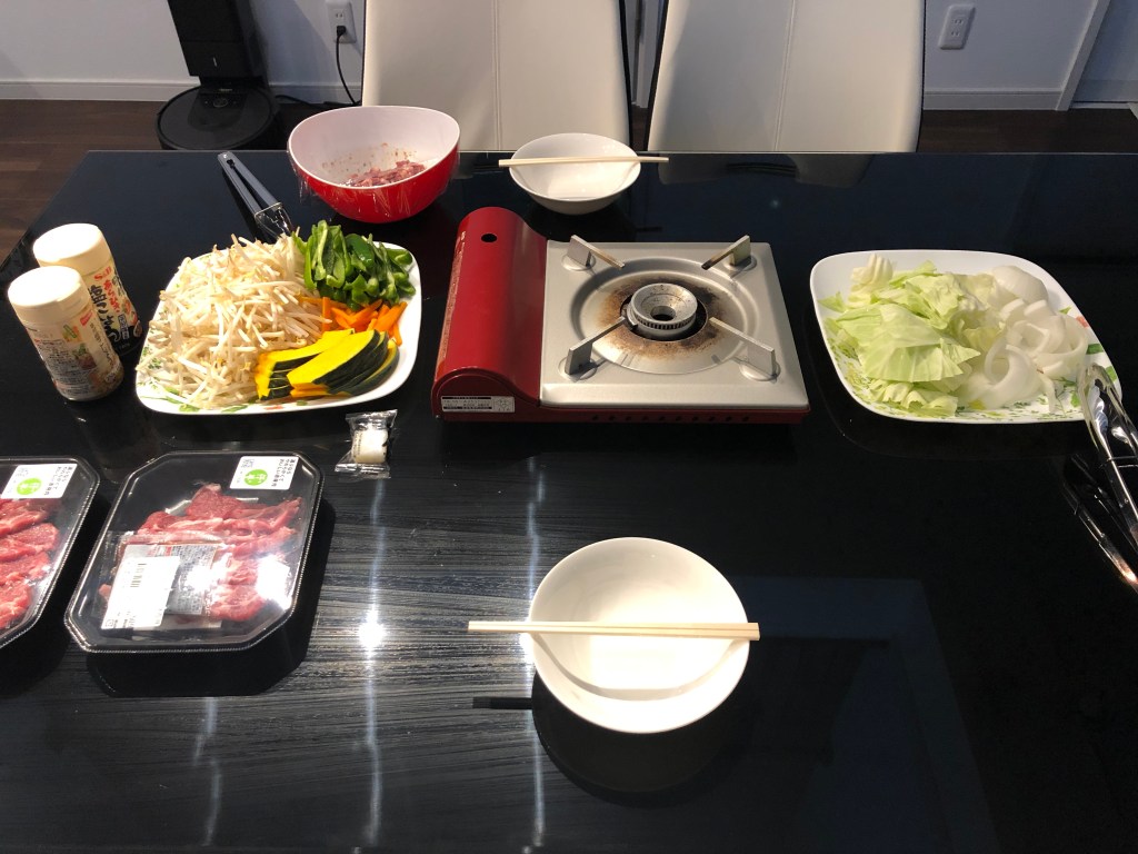 で、掃除を終えて、昨日から準備していたジンギスカンでビールを飲むことに。