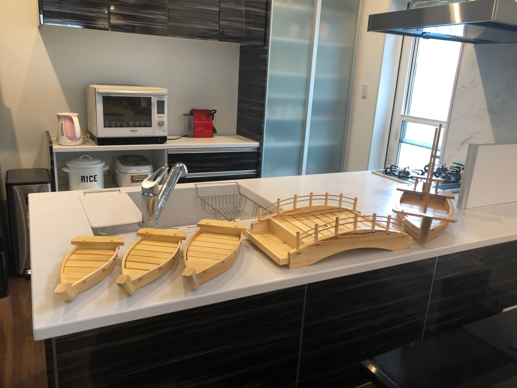 それからキッチンをキレイにしてから、舟盛りの器を並べてみました。
