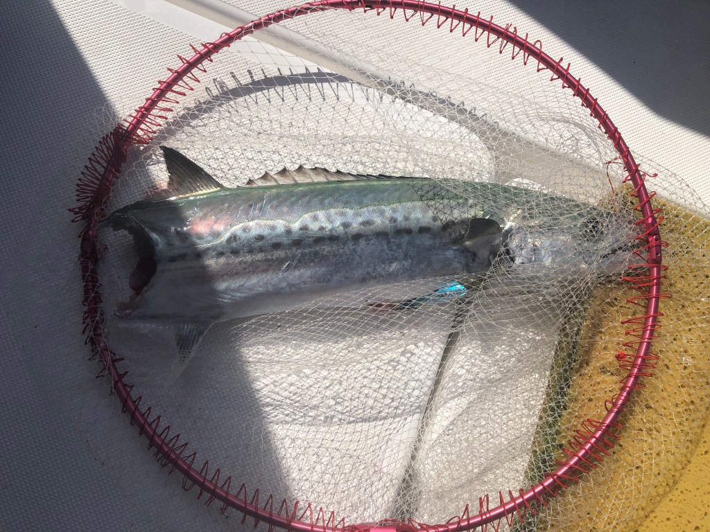1つのジグの前と後ろのフックにダブルでかかること3回、ボトム、中層、表層のどこでも釣れるわ、回収でも釣れるわ、全てリリースしましたが30匹以上釣りました(笑)