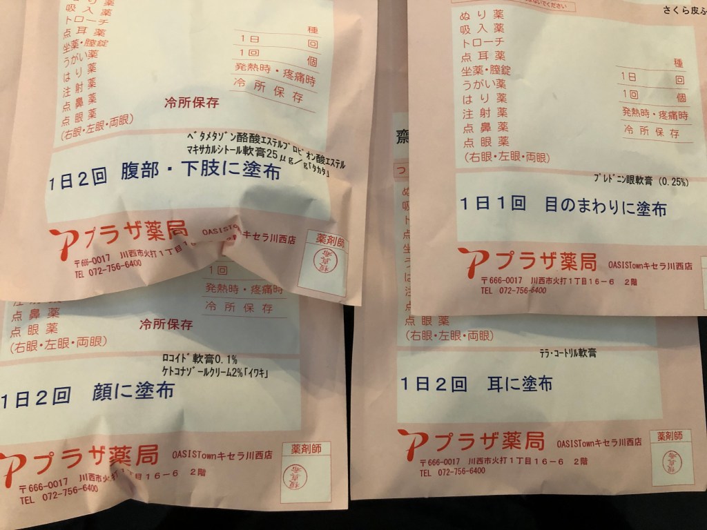 ついでに顔や耳の脂漏性皮膚炎についても処方箋を書いてもらいました。