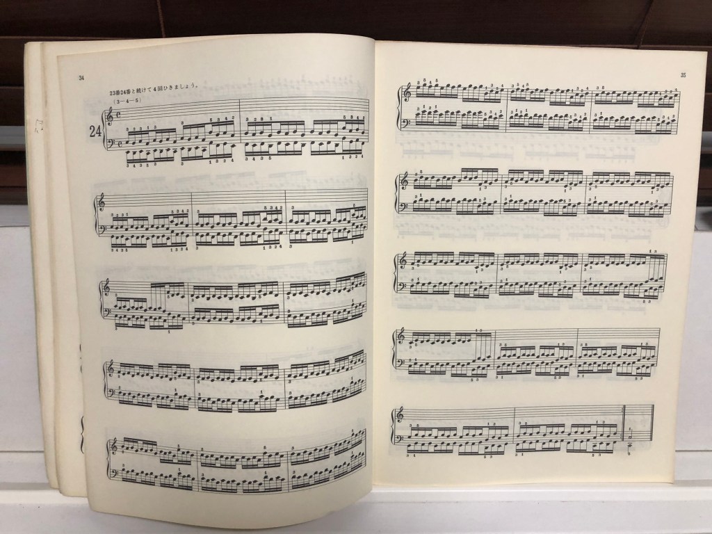 ハノンという指のトレーニングを目的とした教本の曲を延々と弾いています。