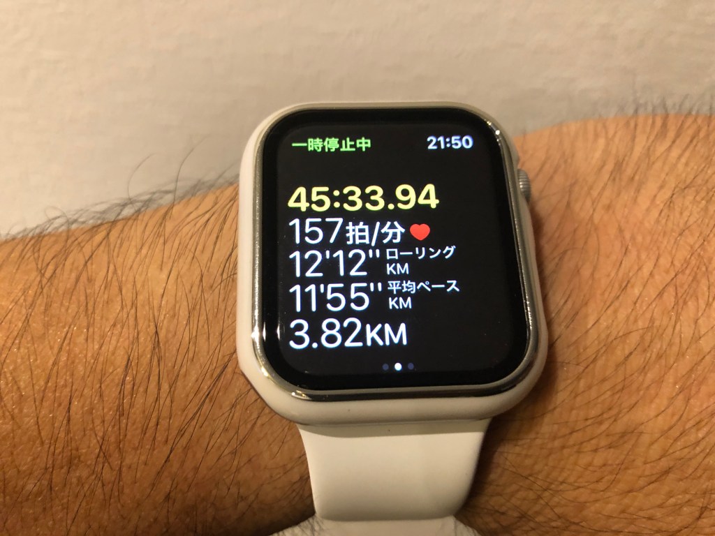 心拍数が157になっていますが、これはウォーキングのラストに家の前で全力ダッシュを何本かするためです。消費カロリーは350kcalでした。