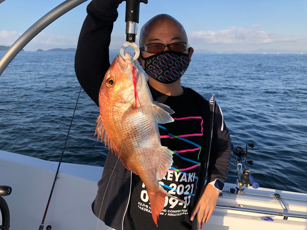 何匹が連続で真鯛を釣った後、未希がタイラバでメジロを釣り上げました。