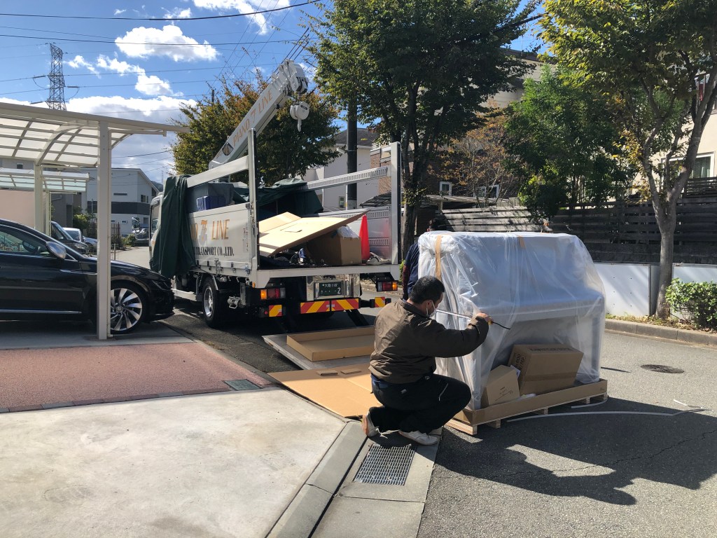 朝10時を過ぎ、ベランダへ行ったり外へ出たりして10分くらいソワソワしてウロウロしていましたが(笑)、無事運送会社さんが到着。
