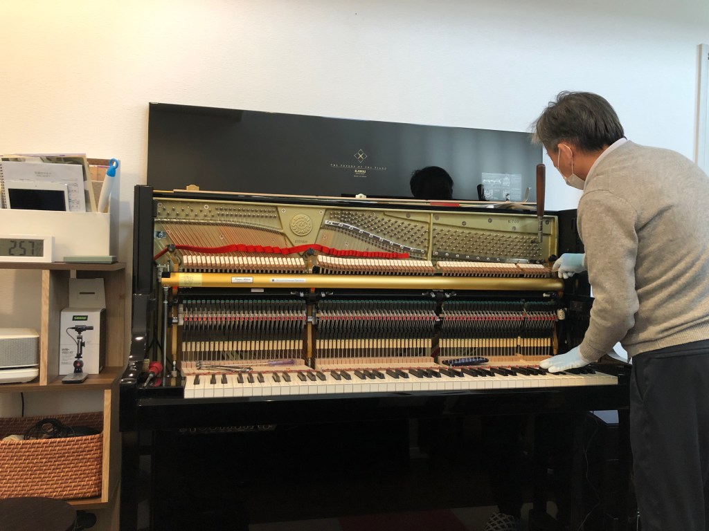 新品のピアノは弦が伸びるので音が狂いやすいそうですが、しっかり調律してもらったのでまたキレイな音色に戻りました。