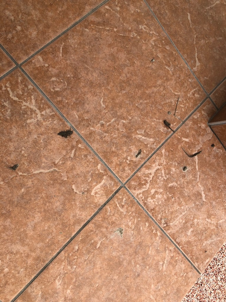 地面には壁に接着しきれなかった小枝や泥が落ちていて、毎日掃除しています(笑)