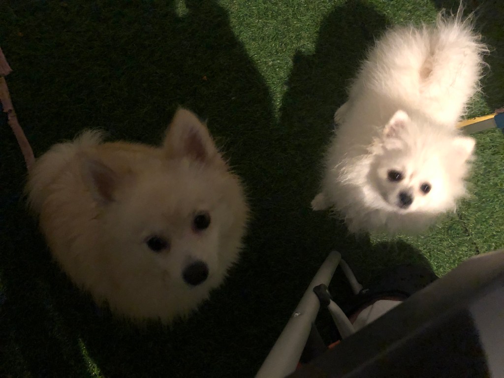 左側がチャッピー(オス)、右側がナナ(メス)で、共にポメラニアンです。