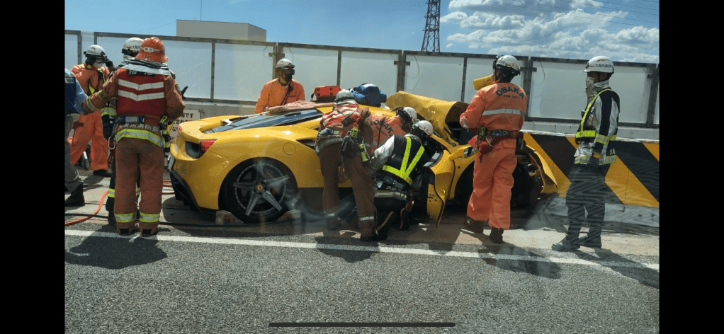 事故からだいぶ時間が経っていたのに、横を通過したときはまだ運転席のドライバーを救出しようとしている感じでした。