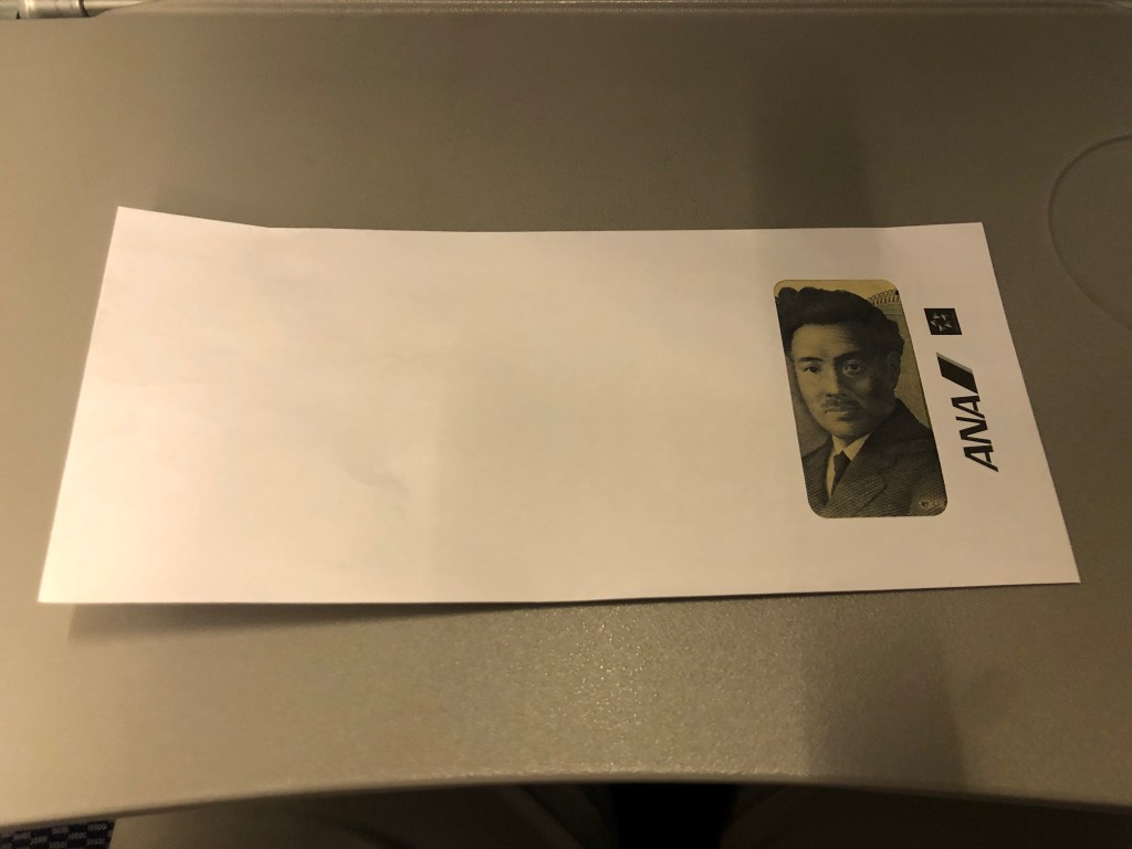仙台空港の搭乗口で、スタッフの女性から座席の控えの紙と一緒に封筒を添えてもらいました。