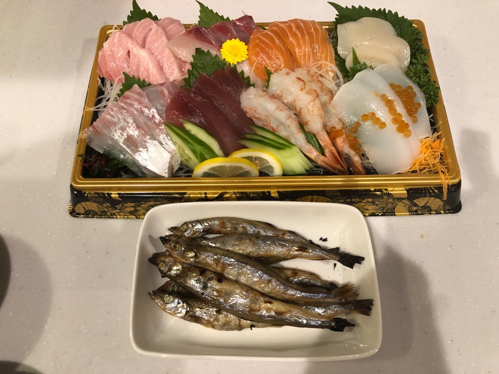 刺身盛りとししゃもは未希と半分ずつですよ。