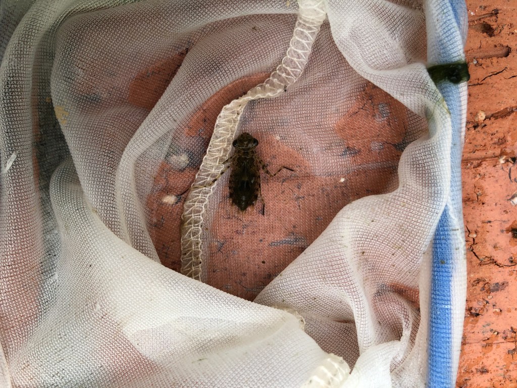 イライラしながら半分諦めていましたが、授業終了後に池の隅でヤゴを発見!