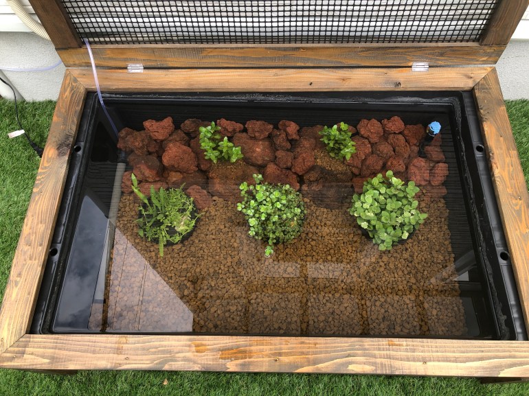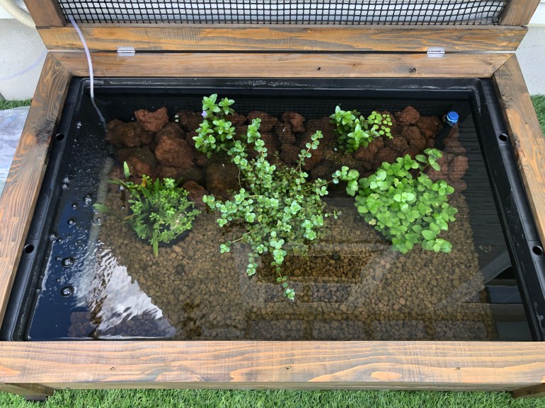 メダカの稚魚のビオトープも植物がだいぶ成長してきました。