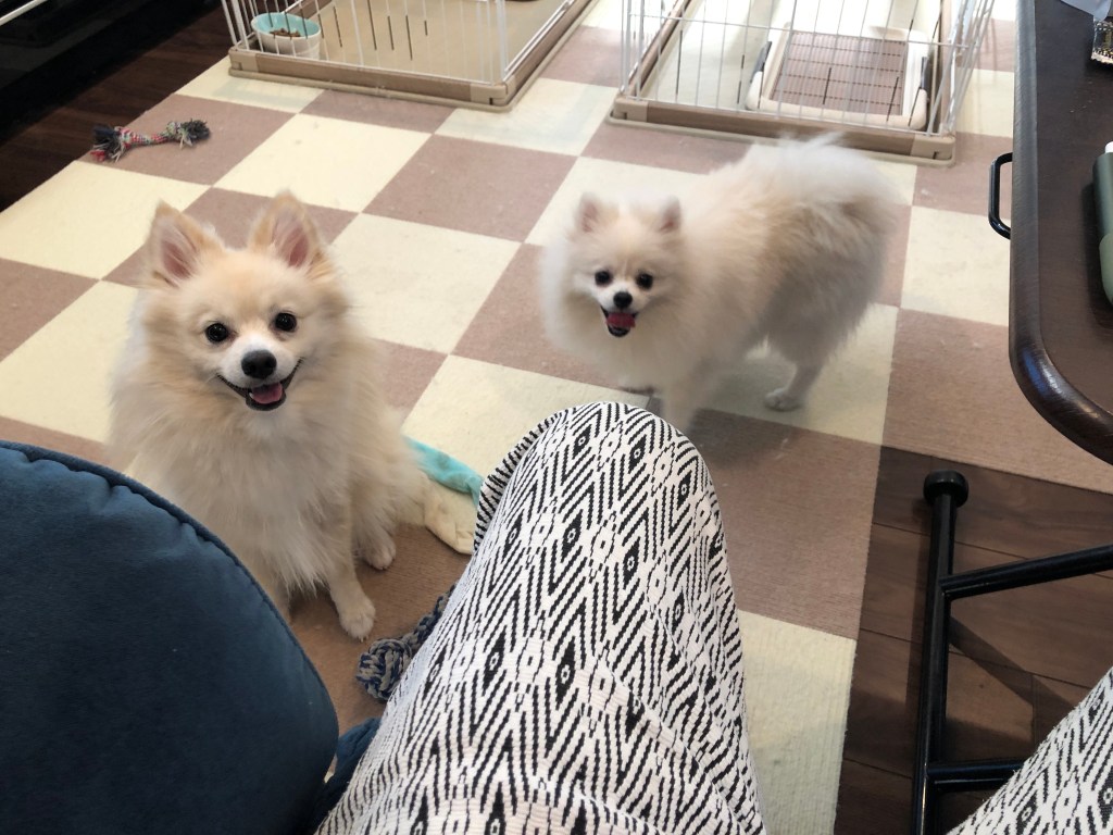 チャッピーはややビビりですが、ナナは好奇心旺盛で、散歩中もかなり大きなシベリアンハスキーや秋田犬とすれ違っても、私がリードを持っていかれるくらいに向かっていきます(汗)