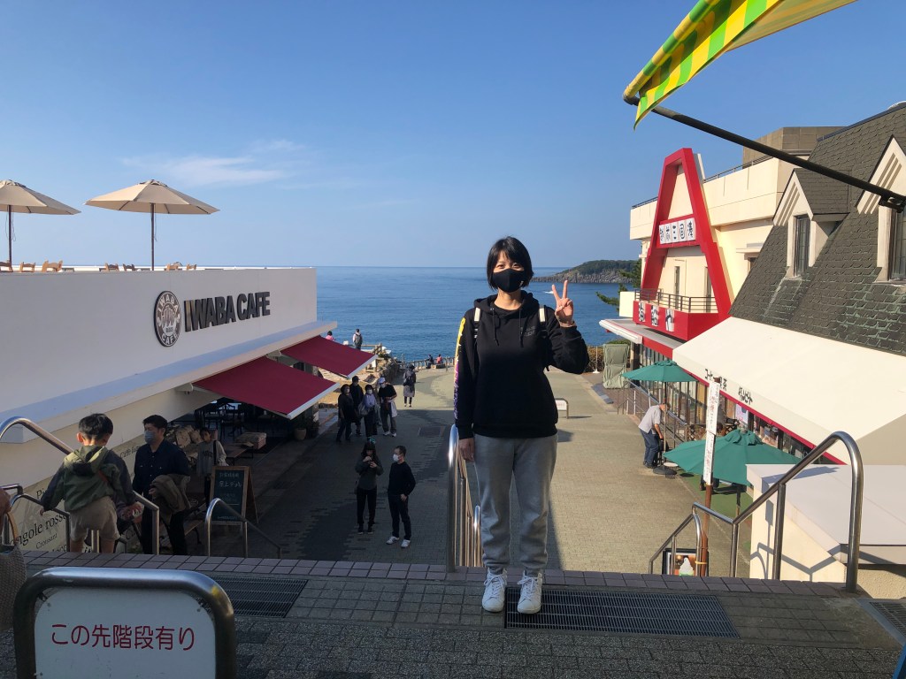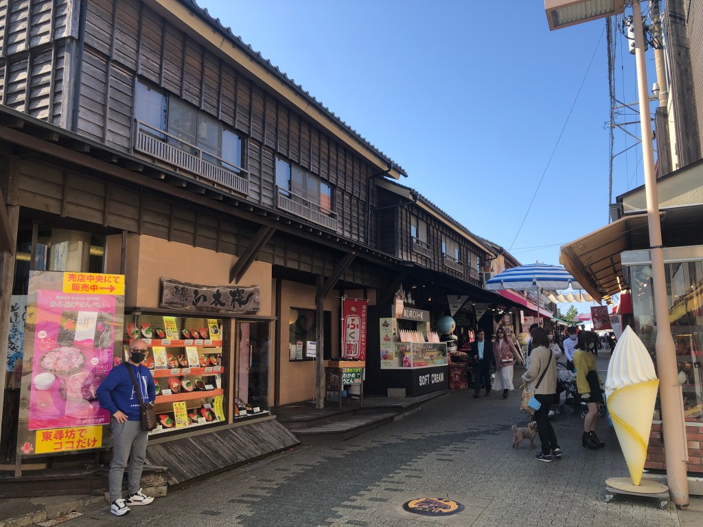 駐車場から東尋坊の海までの道のりに、お土産屋さんや海鮮料理屋さんがたくさんあり、めちゃくちゃテンションが上がりました。