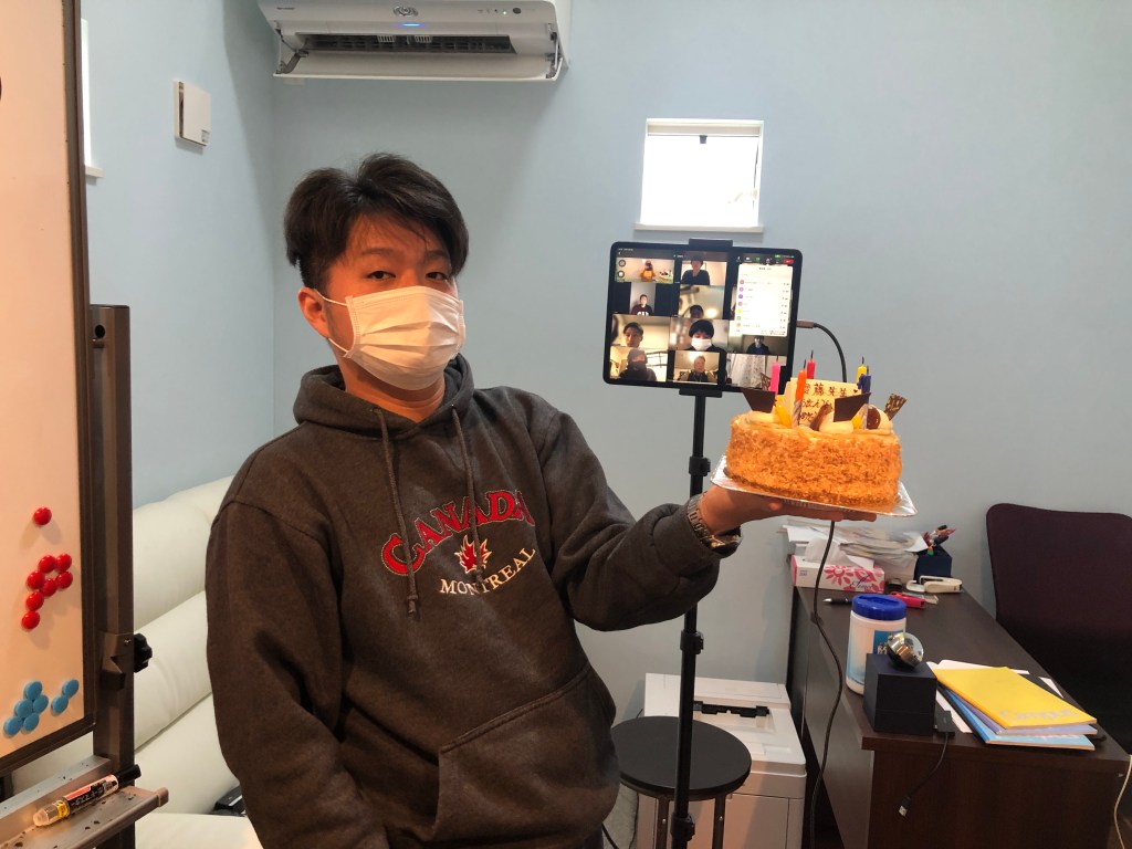 14時になり始業の挨拶をすると、なんとオンラインの塾生達が声を合わせて