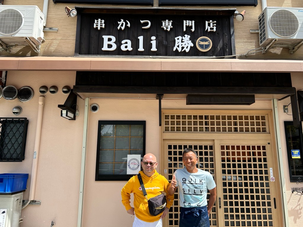 せっかくの大阪ですが、釣り用の服で出掛けていたのでデパートにも行けませんしまともなレストランにも入れないので、教え子の山本さんに会いに行ってきました。