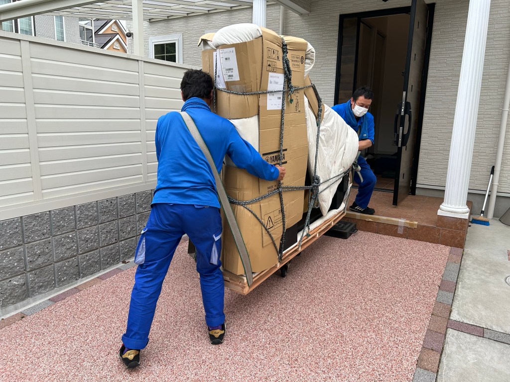 ピアノの運送業者さんの仕事はすごく丁寧です。めちゃくちゃ大変だと思いますが。。。