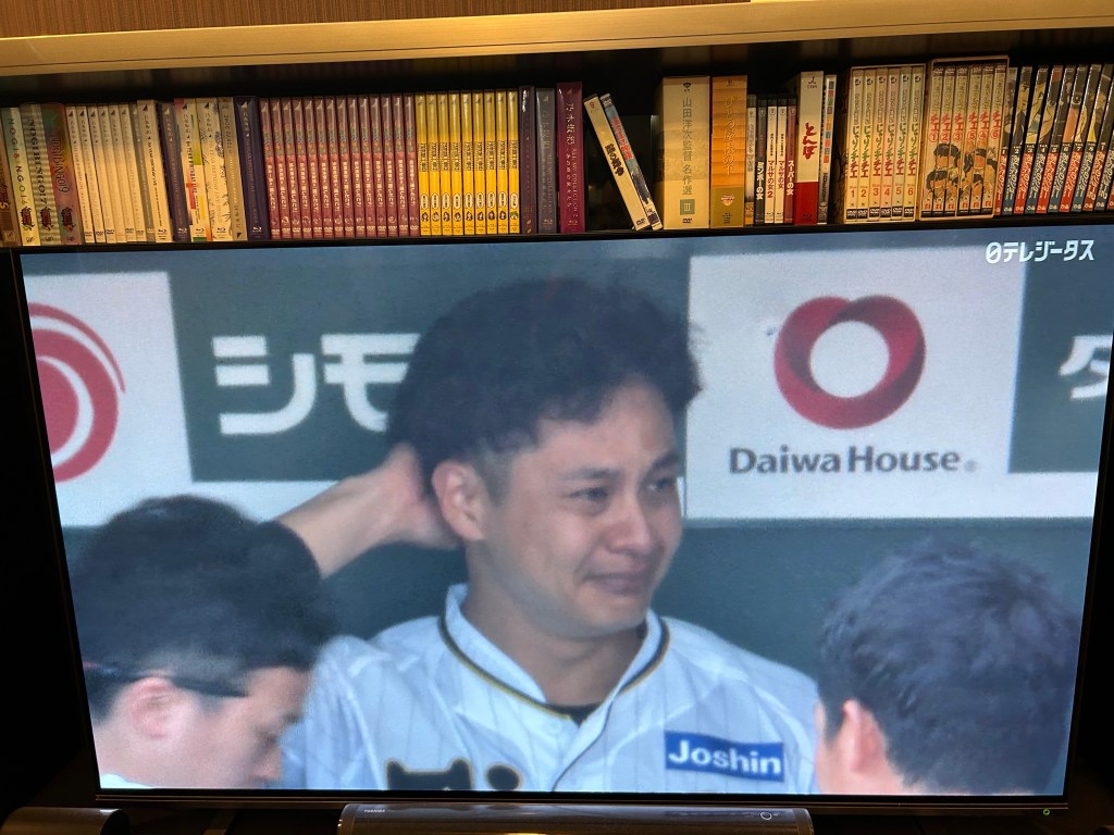 阪神が得点した次の瞬間、大竹はベンチで大号泣していました。