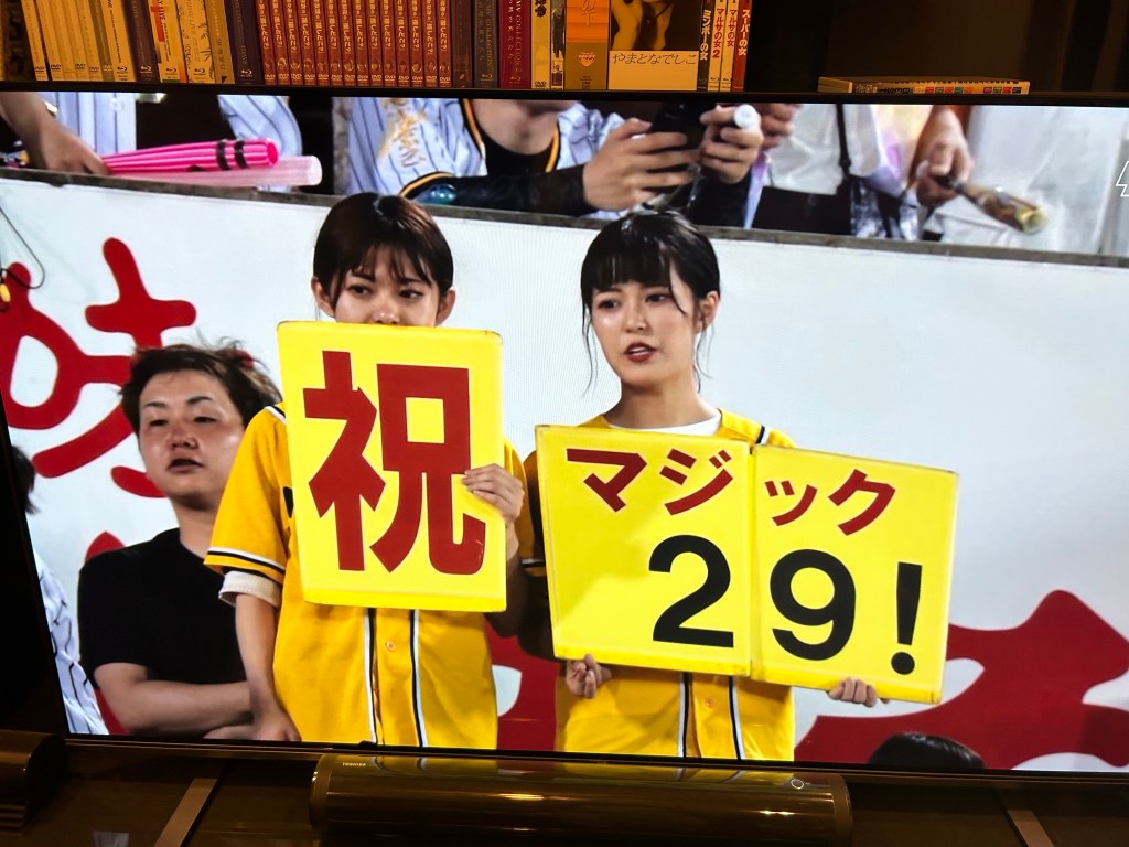 現在マジック29ですが、マジックが減っていってゼロになれば優勝が確定します。阪神が1勝すればマジックが1減ります。2位チームが1敗してもマジックが1減ります。なので最短15試合で阪神の優勝が確定することになります。