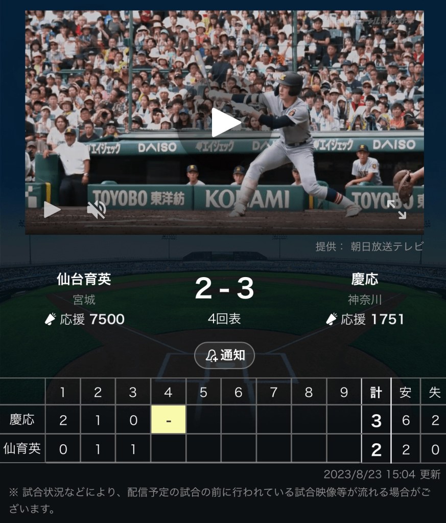 慶応と仙台育英の対戦ですが、両方とも縁のない学校ですが、私は慶応を応援しています。