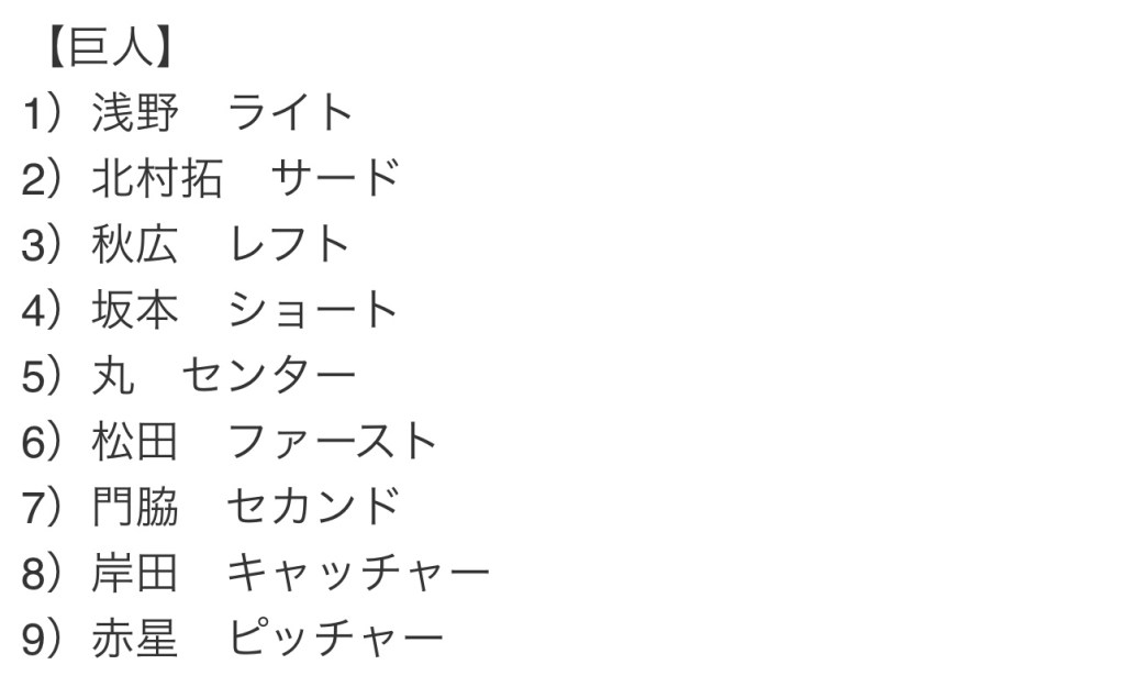 それにしても今日巨人の先発オーダーを見てビックリしました。