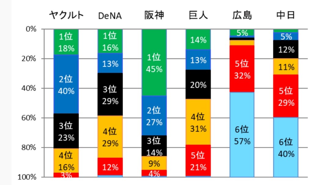 阪神を1位にしている解説者が約半分いました。優秀な解説者さん達です。