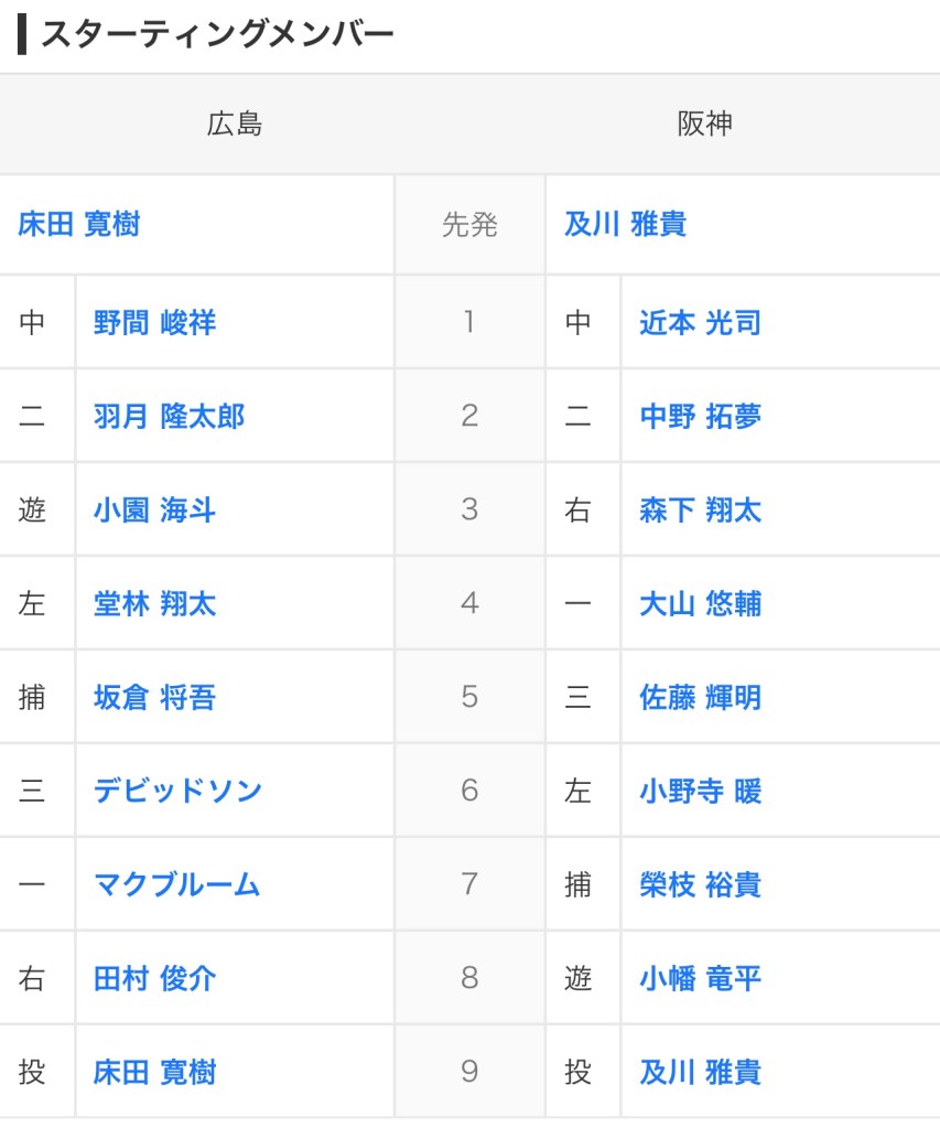 さて、今日の阪神の先発オーダーですが、
