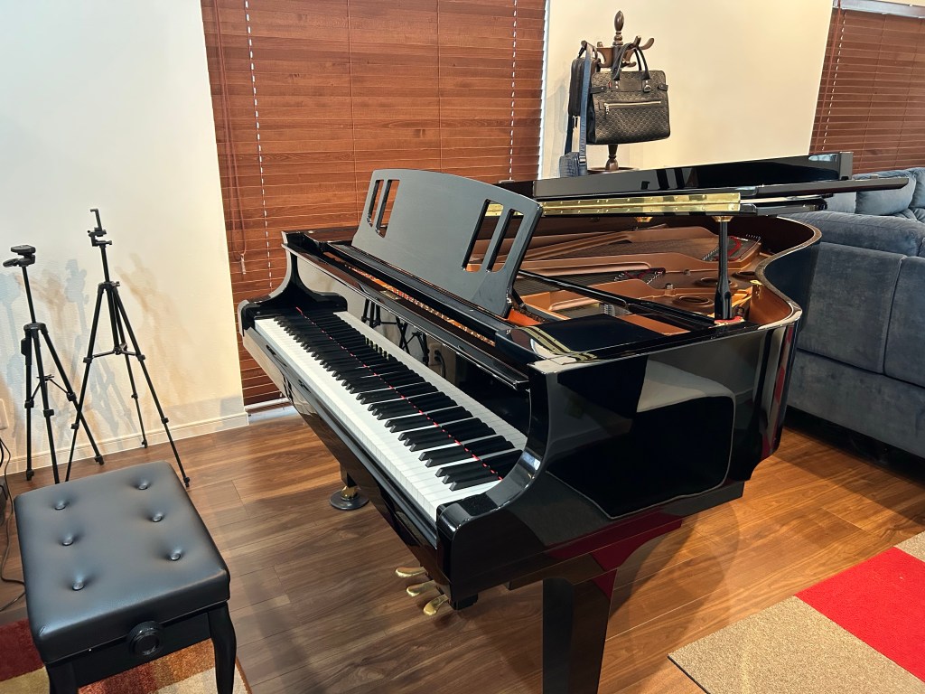 完全に屋根が閉まっているので、音がこもって響きも悪いです。ストリートピアノはだいたいこの状態です。人前で演奏するとグランドピアノの真の力を誤解されてしまいます。