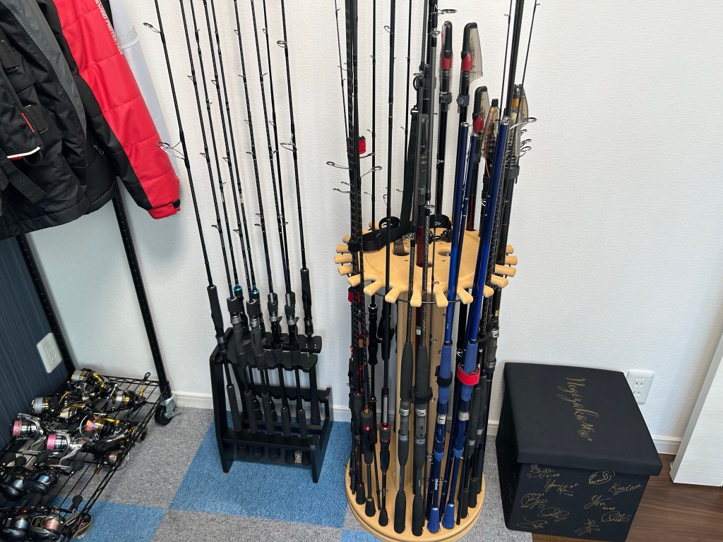 収納用品を購入し、ロッド、リール、ウェア、ライフジャケットを中心に整理しました。