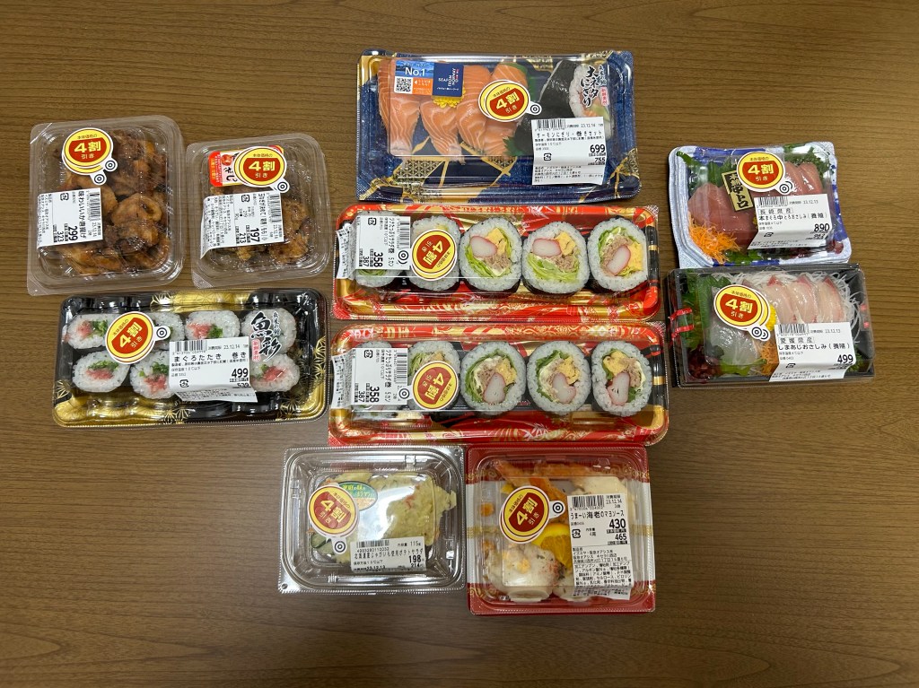 4割引のシールを貼ってくれるまでウロウロして待ち続けるそうです。周りには同じような考えの人がたくさんいて、シールを貼り始めたら取り合いになるそうです(汗)