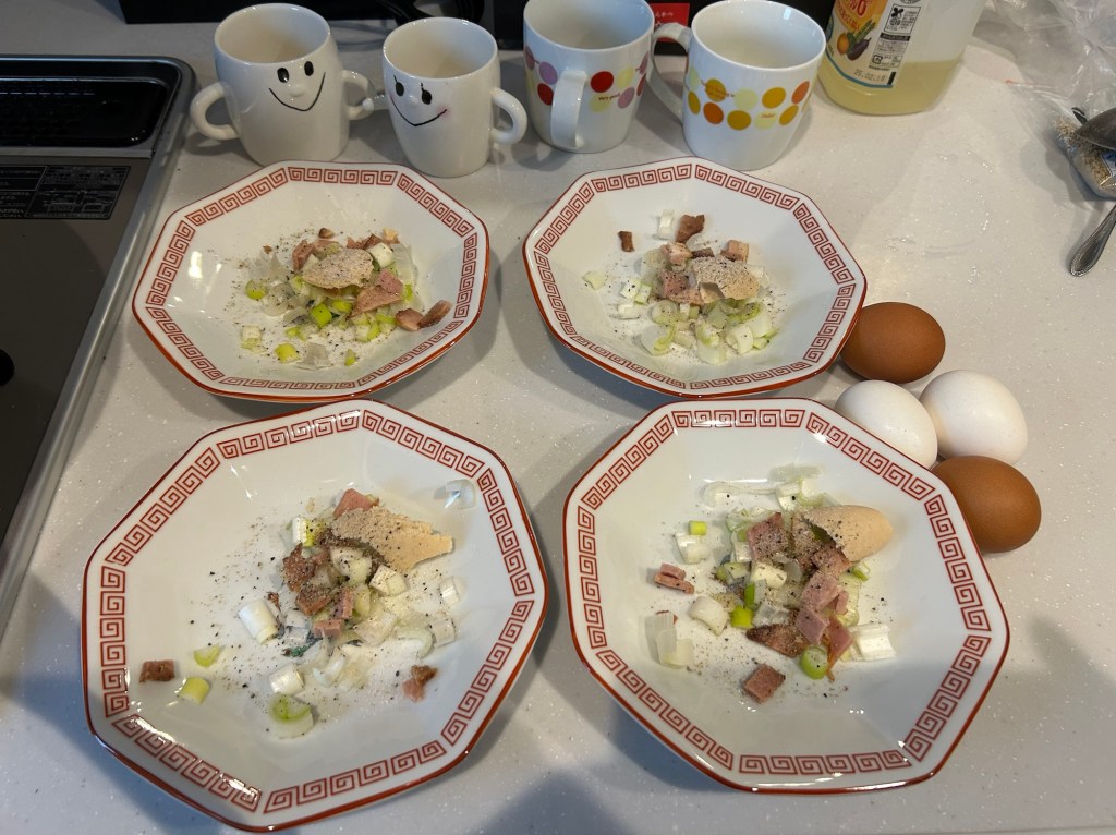 さて、今日は朝からチャーハンを作りました。