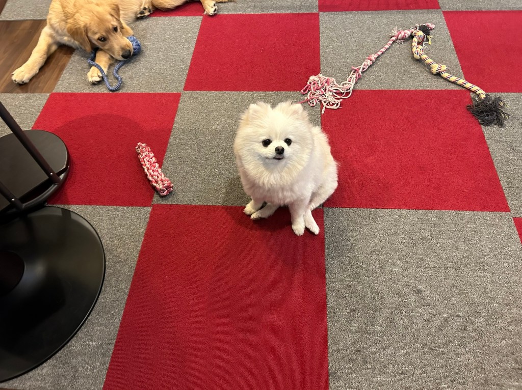カエルのように座るナナ、めちゃくちゃかわいいです。