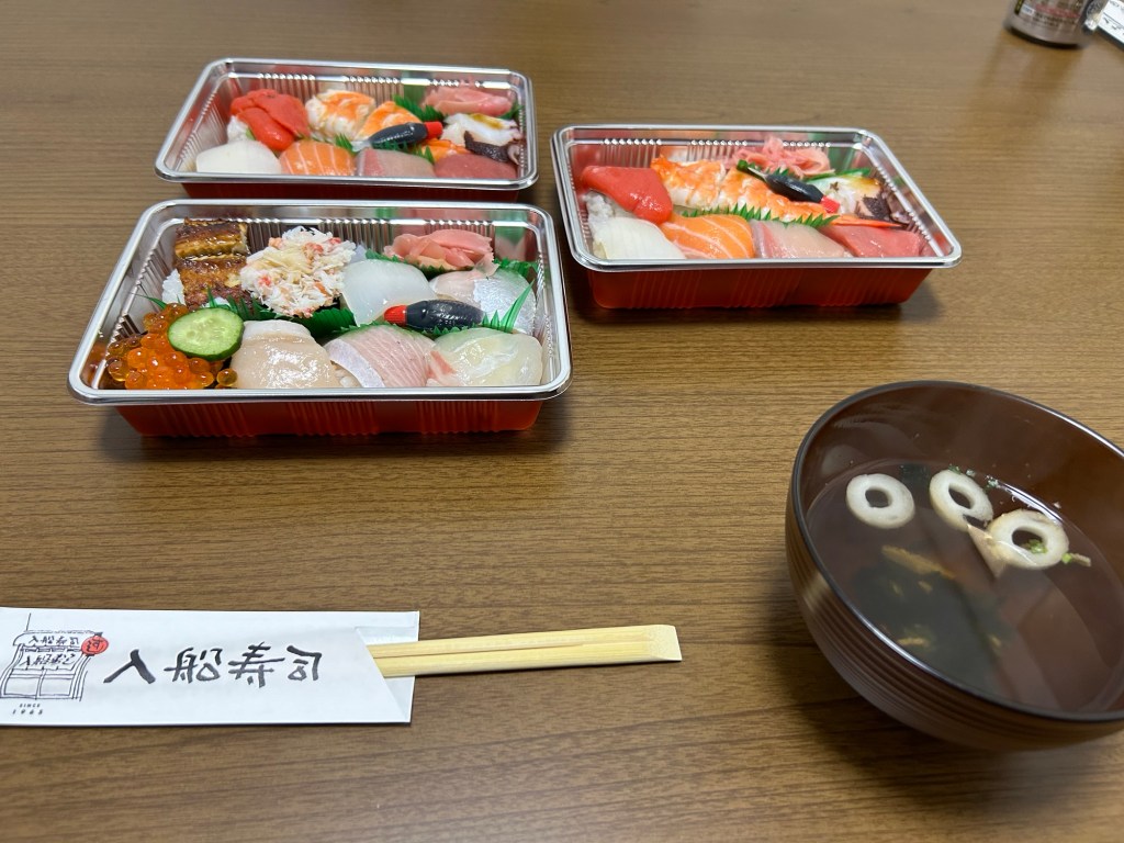 帰りに鶴橋の入船寿司で留守番してくれていた未希におみやげを買って帰りました。