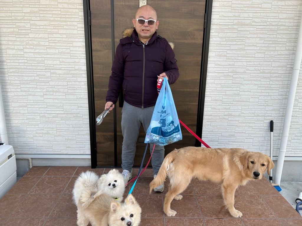 トングとゴミ袋を持っているときはいつもさえない顔をしていますが、理由はトングの先に汚い臭いものがついてるからなんです(汗)