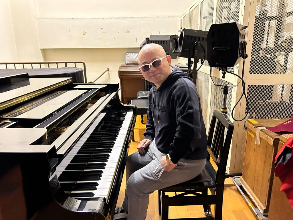 我が家のとは比べ物にならない傷だらけのボロボロのピアノでしたが、まさかグランドピアノに触れるとは思ってもなかったので、めちゃくちゃ興奮状態で岩本を電話で呼び出して写真を撮ってもらいました。